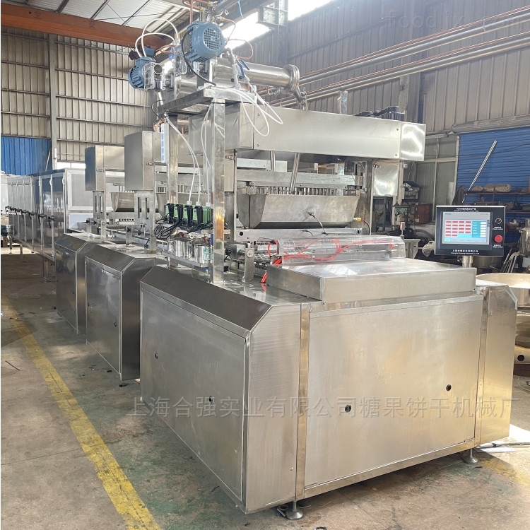 上海合強糖果機器 糖果澆注生產線 糖果成套設備集機、電、氣控制于一體,結構合理緊湊,具有自動化程度,生產效率高。 能生產硬糖、棒糖、夾芯糖、明膠軟糖、果膠軟糖、卡拉膠軟糖。單色、雙味雙色噴花、雙味雙色雙層、三味三色噴花以及水晶糖、夾心糖、條文糖及思考奇等。上海合強糖果機器 糖果澆注生產線 糖果成套設備生產的糖果具有晶瑩光滑、噴花條紋清晰、夾心量及位置穩(wěn)定、口感良好等特點而深受國內外客戶的歡迎。